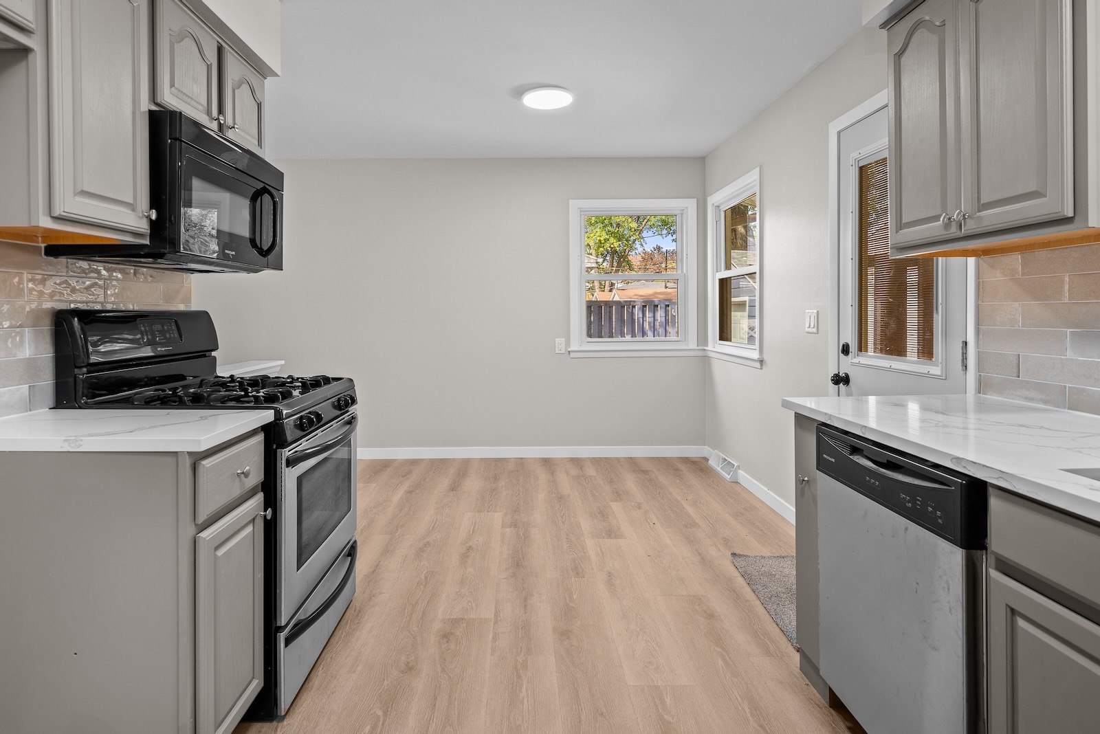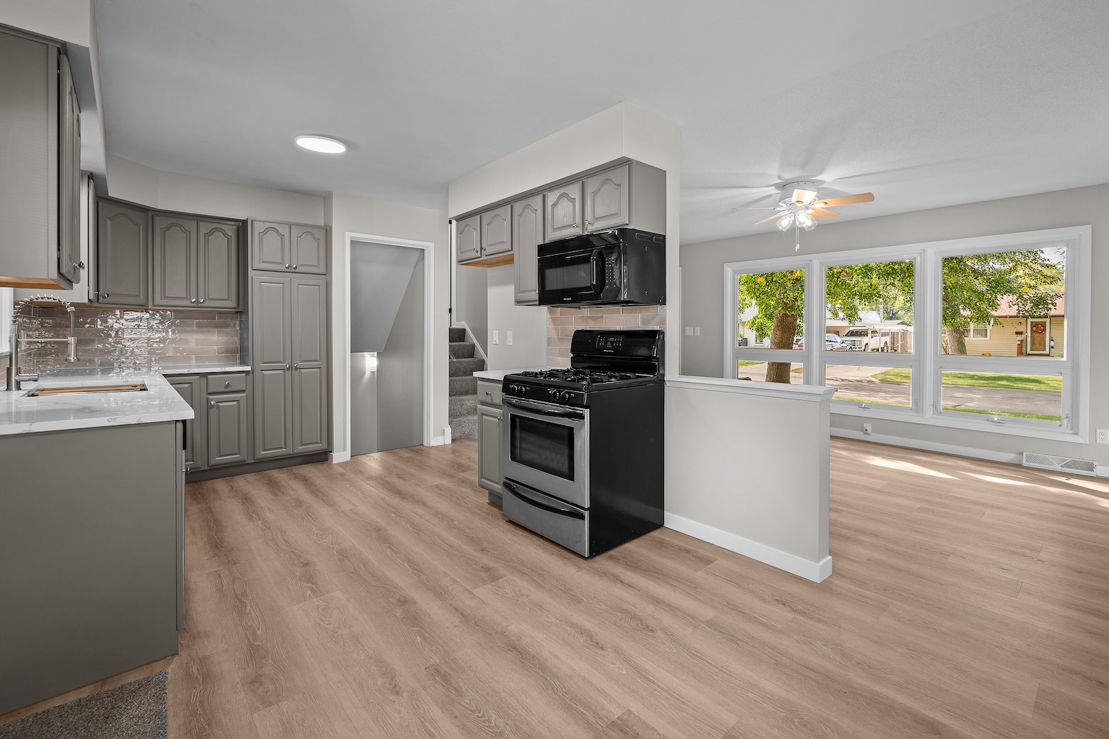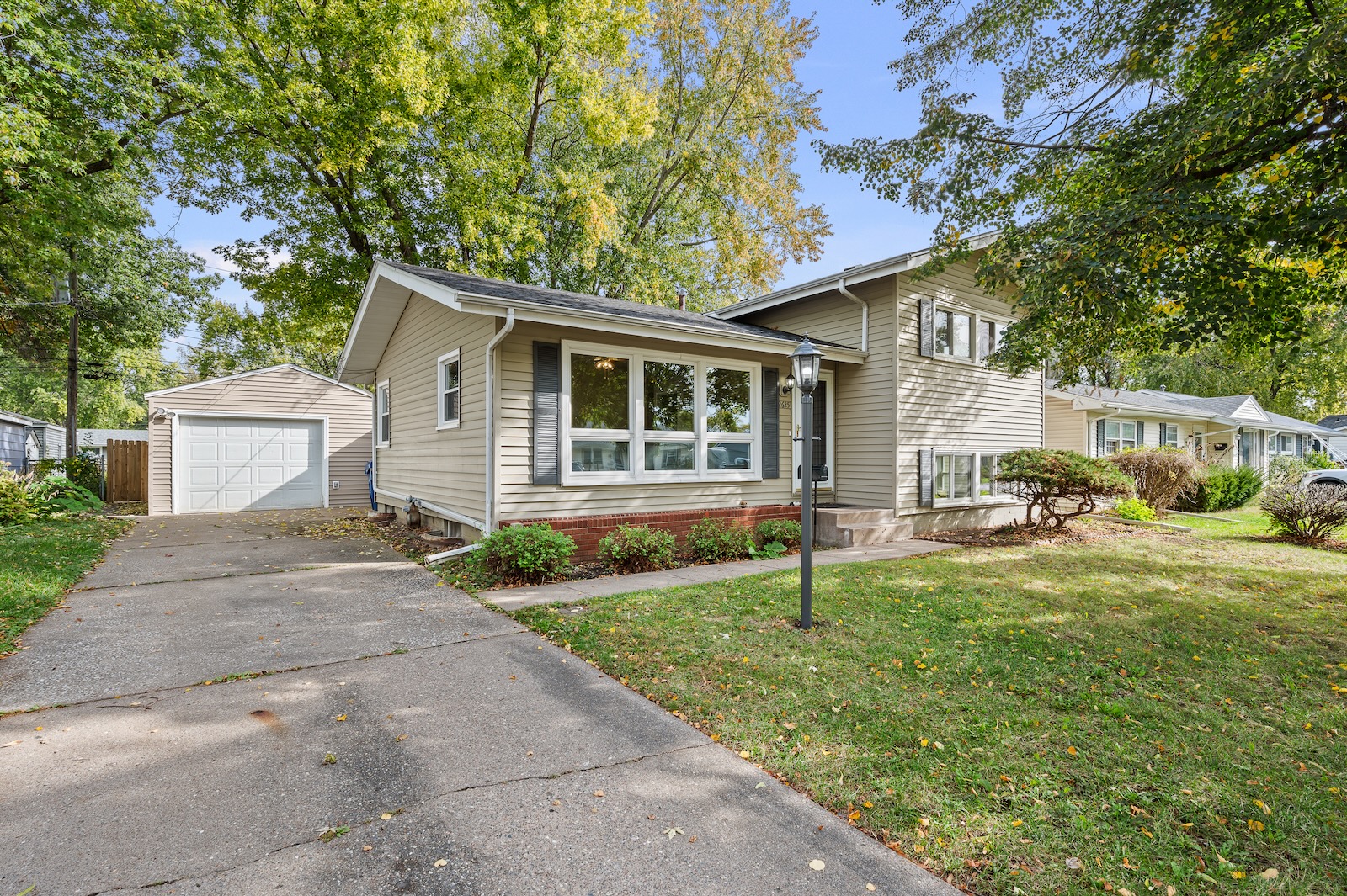 Welcome to this spacious Quad-Level home located in the highly sought-after Bettendorf School District. This turn-key property has been completely updated and is ready for its new owners. It features 4 bedrooms, 2.5 bathrooms, a detached garage, and numerous modern upgrades throughout. As you enter, you’ll be greeted by luxury vinyl plank flooring that flows seamlessly through the open-concept living, dining, and kitchen areas. The kitchen showcases neutral cabinetry, solid-surface counters, a stylish tile backsplash, and stainless appliances. Upstairs, you’ll find two comfortable bedrooms and a full bathroom. The lower level offers two additional bedrooms and another full bath, while the basement level reveals a versatile bonus room and a half bathroom — perfect for use as a fifth bedroom, recreation area, game room, or home office. Outside, enjoy the covered patio, detached 1-car garage, and fenced-in yard — ideal for relaxing or entertaining. Buyer and buyer’s agent to verify all information, including square footage, room sizes, school zones, taxes, exemptions, and zoning. Measurements are approximate.