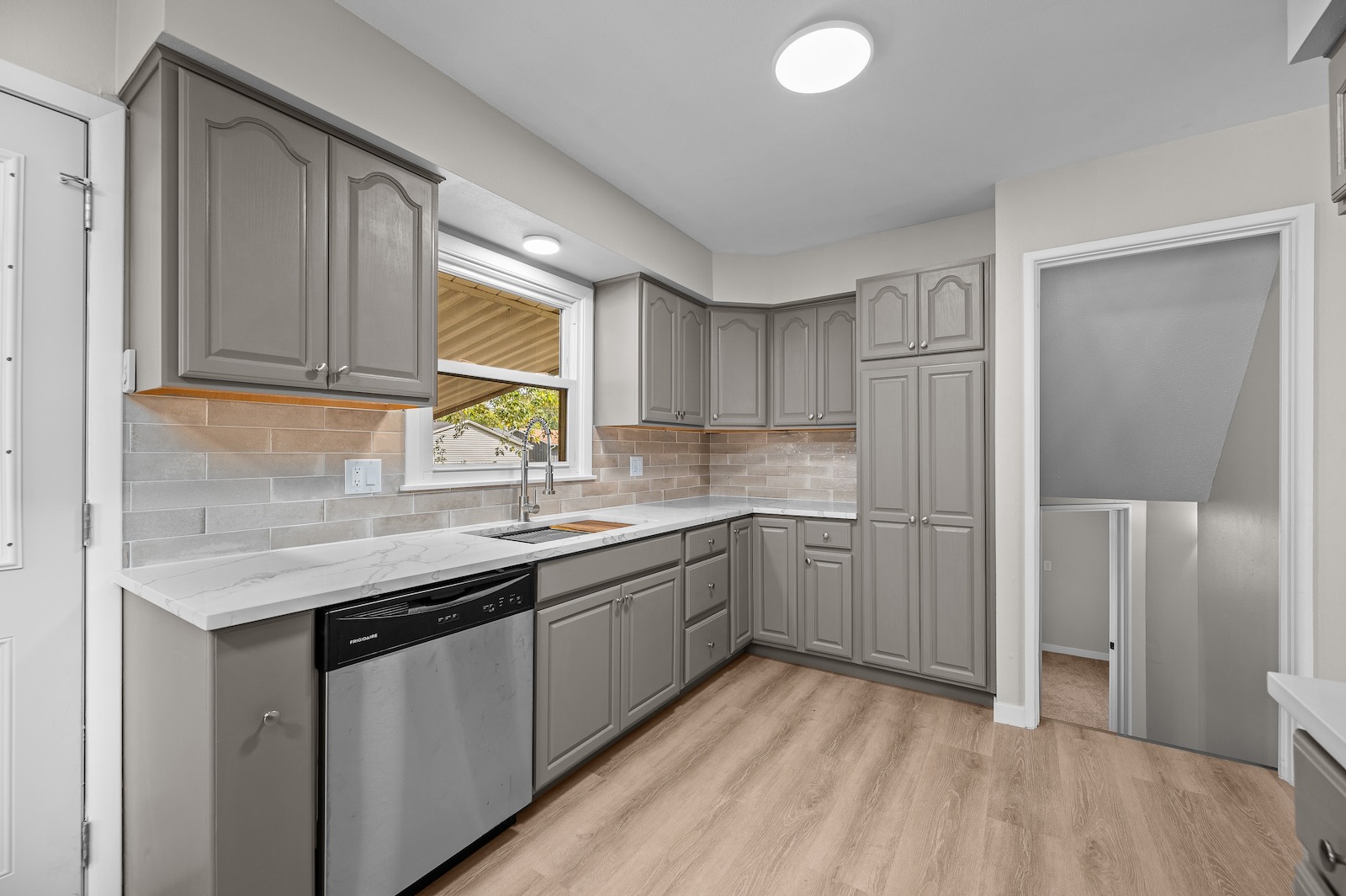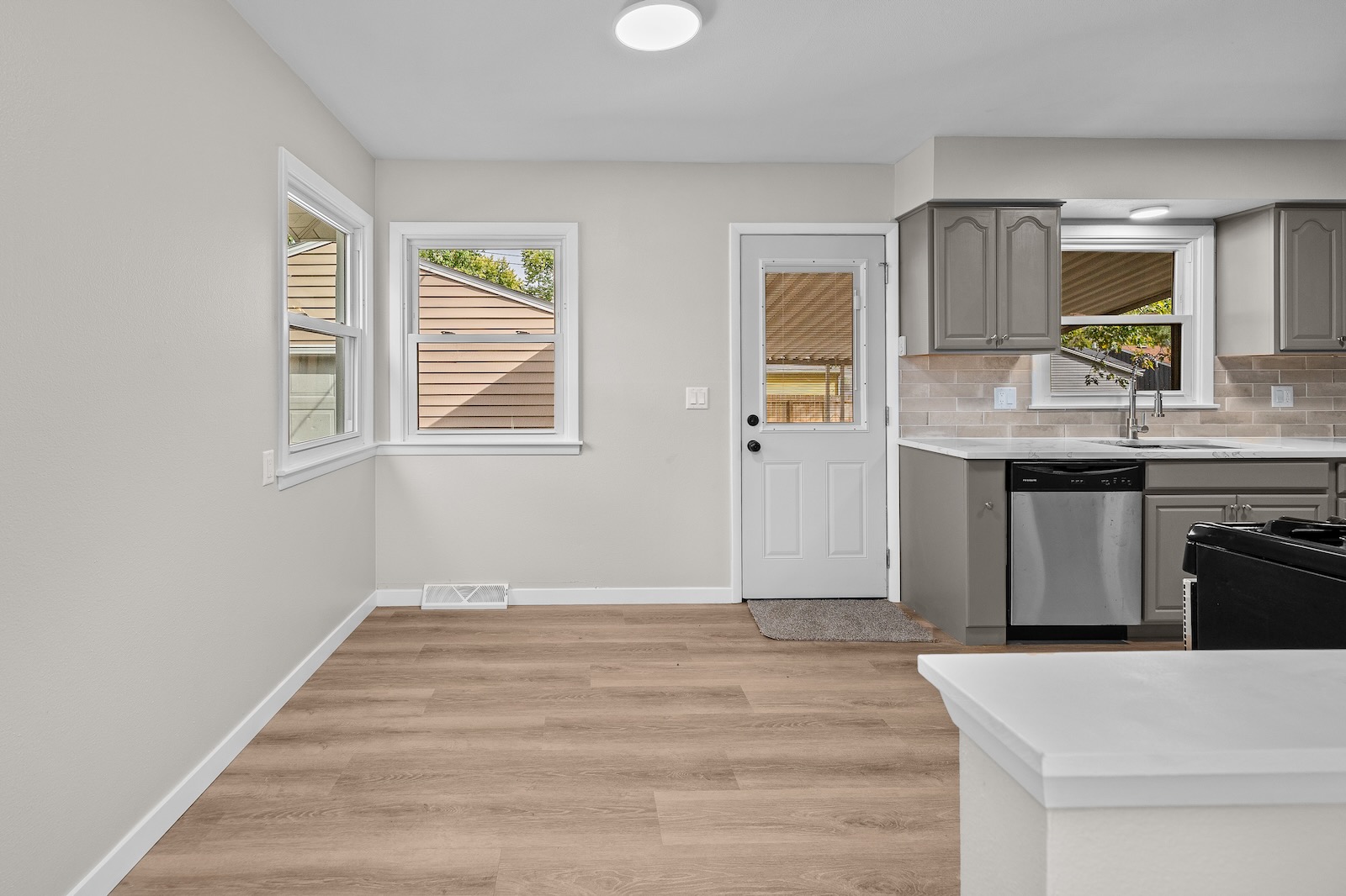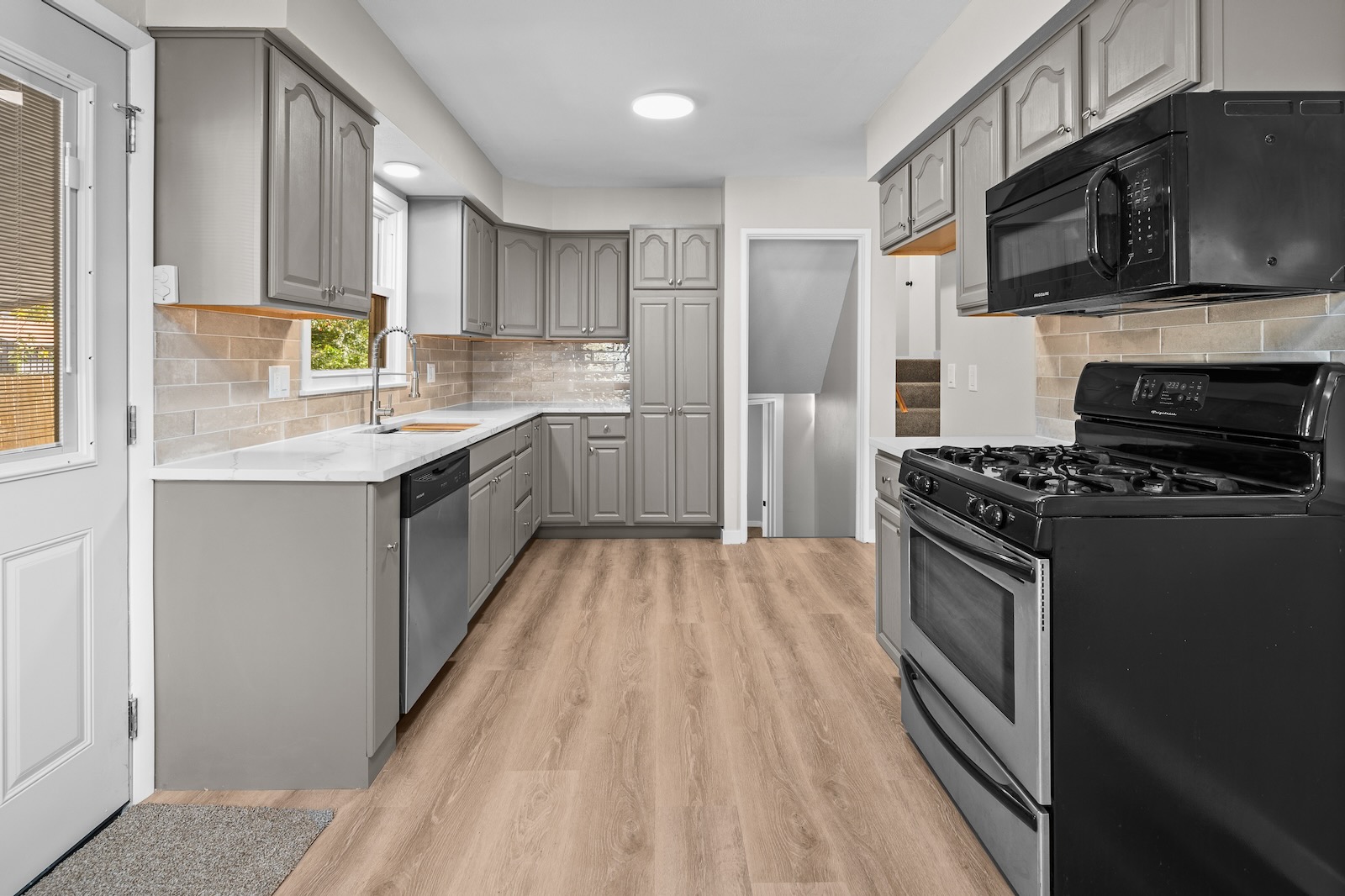 Welcome to this spacious Quad-Level home located in the highly sought-after Bettendorf School District. This turn-key property has been completely updated and is ready for its new owners. It features 4 bedrooms, 2.5 bathrooms, a detached garage, and numerous modern upgrades throughout. As you enter, you’ll be greeted by luxury vinyl plank flooring that flows seamlessly through the open-concept living, dining, and kitchen areas. The kitchen showcases neutral cabinetry, solid-surface counters, a stylish tile backsplash, and stainless appliances. Upstairs, you’ll find two comfortable bedrooms and a full bathroom. The lower level offers two additional bedrooms and another full bath, while the basement level reveals a versatile bonus room and a half bathroom — perfect for use as a fifth bedroom, recreation area, game room, or home office. Outside, enjoy the covered patio, detached 1-car garage, and fenced-in yard — ideal for relaxing or entertaining. Buyer and buyer’s agent to verify all information, including square footage, room sizes, school zones, taxes, exemptions, and zoning. Measurements are approximate.