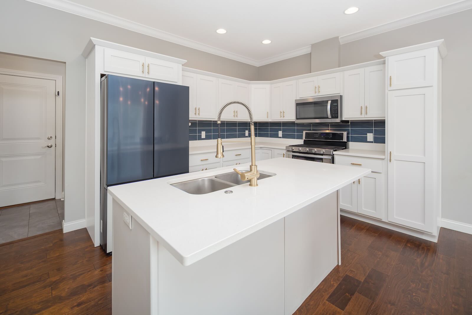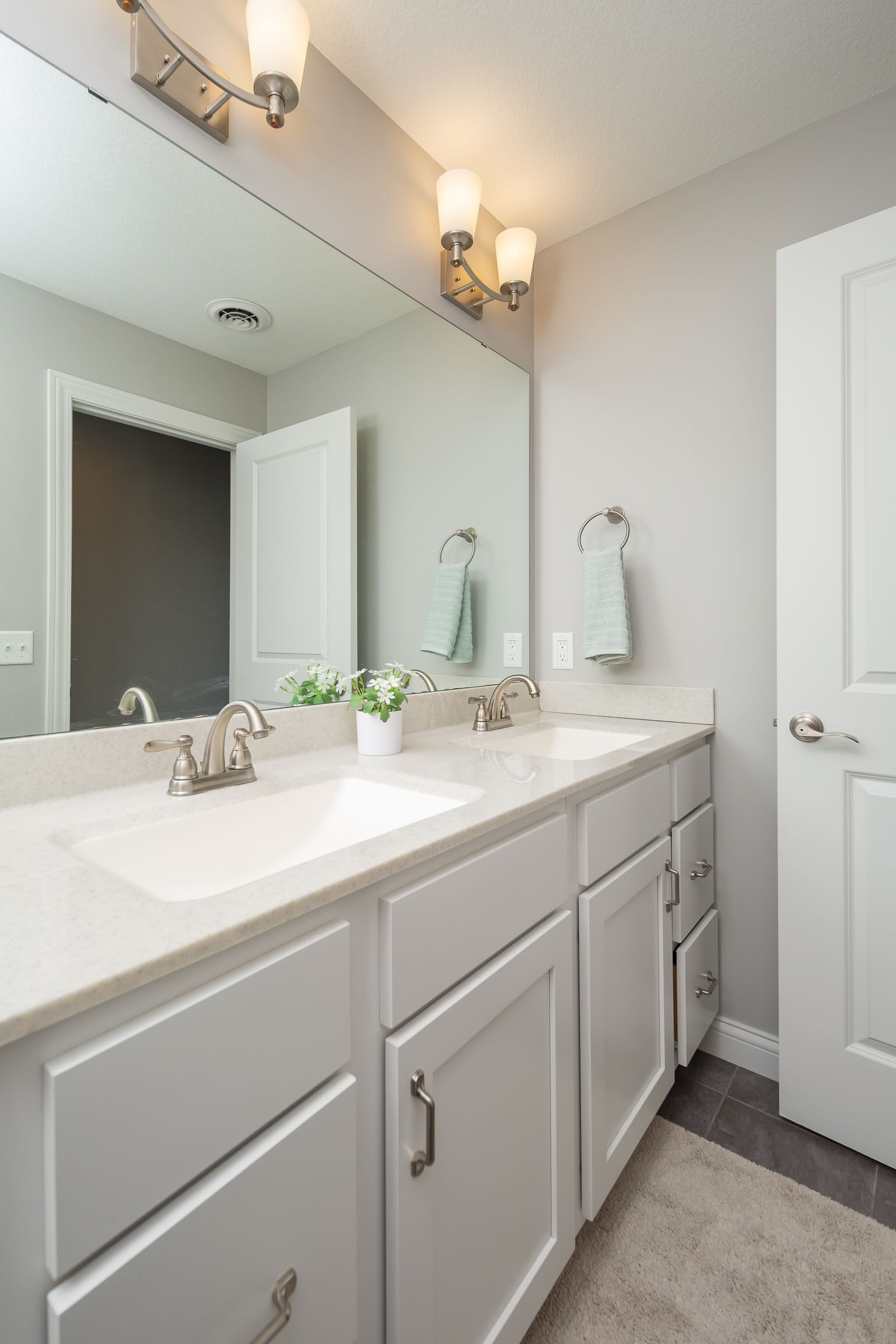 MLS ID QC4266374 Nestled in the sought-after Villages of The Woodlands within Pleasant Valley Schools, this townhome offers 3 bedrooms, 3.5 baths, an attached garage, and abundant upgrades. The main level features beautiful wood floors, wainscoting, and an open-concept design connecting the living, dining, and chef’s delight with white cabinetry, solid-surface counters, center island, stainless steel appliances, tile backsplash, pantry, and patio access. Natural light fills the living room, creating an inviting space. Upstairs, the vaulted primary suite boasts an ensuite with walk-in shower, double vanity, and closet connected to the laundry. Two more bedrooms and a full bath complete the level. The finished basement includes a spacious rec room, full bath, egress window, and storage. Highlights include upgraded carpet, quartz counters, 9-foot ceilings, and proximity to shops and dining. HOA covers snow removal and lawn care for added ease. Buyer/buyer agent to verify all info, including square footage, sizes, school zones, taxes, exemptions, and zoning. Measurements approximate.